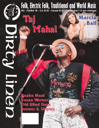 Dirty Linen #62, Feb/Mar 1996 – Taj Mahal, Marcia Ball, Baaba Maal, Brewer & Shipley, Old Blind Dogs, Kenneth S. Goldstein, Susan Werner, Charlie King, Blows-A-Bellows 3 (Button Box Masters), The Blazers, Vance Gilbert, recording reviews, concerts, books & videos, Wee Folk, Radio Planet 3, Go West Young Nerd