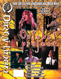 Dirty Linen #65, Aug/Sep 1996 – October Project, Richie Havens, Joe Boyd, Liam Maonla¡, Linda Thompson, Norma Waterson, Chris Strachwitz & Arhoolie Records, Ensemble Galilei, Artisan, Duo Guardabarranco, Barachois, First Degree Burns, No Nerds is Good Nerds, Italian Roots Music on New Tone/Robi Droli, Book reviews, Concert reviews, Book reviews, Recording reviews, Video reviews